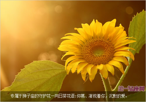狮子座的人热情、阳光、大方是他们性格上最大的特色。经常是团体中的焦点人物,但是过于虚荣高傲,这是他们的致命缺点。向日葵对于火的星座,有强力提升爱情运的作用,同时又象征着阳光,美好,花语是沉默的爱。可以让狮子座个性低调,同时又能够突出狮子们有着是光明和正义的使者的代表。因此用向日葵做为狮子座的守护花是最适合不过了的。